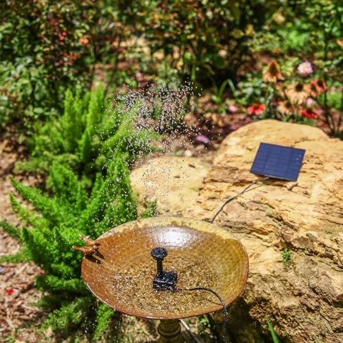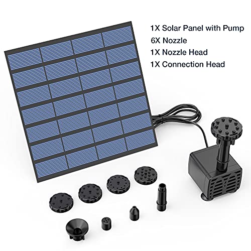 | Features | AISITIN Solarbrunnen-Set für Vogeltränke: 2-teiliges Solarbrunnen-Set, bestehend aus einem Wasserpumpen-Set, sorgfältig aus hocheffizienten Solarmodulen (7 V 1,5 W), voll funktionsfähig und mit einer Lebensdauer von bis zu 10.000 Stunden. Die Lebensdauer ist länger als bei gewöhnlichen Solarbrunnen. Es ist auch umweltfreundlich und sicher., 【Solar-Brunnenpumpe】Solar-Teichpumpen mit Solarmodulen sind einfach zu installieren und zu verwenden. Der Solarbrunnen ist vollständig mit Solarenergie aufgeladen und benötigt weder Batterien noch Strom; lassen Sie einfach die Pumpe des Brunnens auf dem Wasser schwimmen und beginnen Sie zu arbeiten, wenn die Sonne scheint. Je stärker das Sonnenlicht, desto höher die Effizienz., 6 verschiedene Düsen: Gartenbrunnen für den Außenbereich enthält 6 verschiedene Düsen. Um Spritzer in Ihrer Spüle zu vermeiden, können Sie die Höhe und den Wasserstrahl durch Wechseln der Düsen einstellen. Die Sprühhöhe kann 30-60 cm erreichen. Erfüllt alle Ihre Bedürfnisse für kleine Brunnen., Einfach zu bedienen: Legen Sie es einfach ins Wasser, die Solarpumpe kann ordnungsgemäß funktionieren, nachdem Sie genügend Sonne erhalten haben. Bewegen Sie sich frei an verschiedenen Orten ohne komplizierte Installation und Wartung. Das Kabel zwischen Solarpanel und Pumpe ist lang genug, um ein 3 Meter langes Kabel zu haben, das einen relativ großen Bereich abdeckt, ohne befürchten zu müssen, dass die Pumpe im Schatten nicht funktioniert., Breiter Anwendungsbereich: Die Solar-Brunnenpumpe ist die ideale Dekoration für Vogelbad, Fischaquarium, kleinen Teich, Pool, Garten, Sauerstoffzirkulationswasser usw., kann Ihren Garten oder Hof einzigartig machen und die Aufmerksamkeit aller Passanten auf sich ziehen, um Ihren Brunnen lebendiger zu machen. |