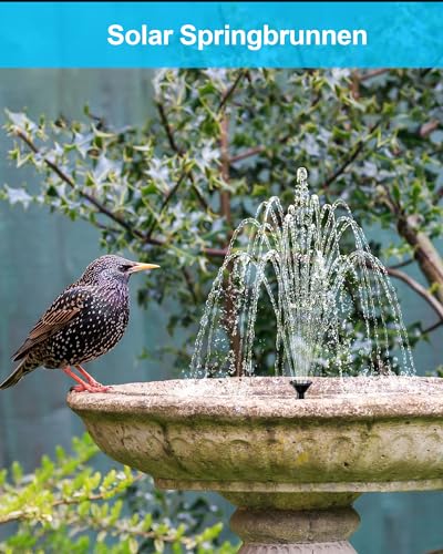 | Features | 【Solarbrunnen für Vogeltränke & Garten】Diese solar brunnenpumpe läuft, solange das Solarpanel Sonnenlicht empfängt – ideal für Vogelbäder, Teiche, Gärten, Wasserfälle und mehr. Eine Solar wasserpumpe zieht Vögel und Wildtiere an und bringt Schönheit und Freude in Ihre Außenbereiche, 【Langlebige Solar Teichpumpe】 Die verbesserte solar springbrunnen für außen bietet Trockenlaufschutz und Filterwatte. Der Solar Gartenbrunnen pumpe schaltet sich automatisch ab, wenn der Wasserstand zu niedrig wird. Ein Filter verhindert, dass viel schmutziger Abfall in die Pumpe gelangt, 【Mehrere DIY Solar Wasserspiele】Mit 6 verschiedenen Düsen und Rohren können Sie leicht verschiedene solar springbrunnen designs und solar wasserspiele erstellen. Verschönern Sie Ihren Garten mit einem Hauch von Romantik und kreativem Flair, 【Umweltfreundliches Solarpanel-Set】Das Biling Solarbrunnen set nutzt 100% Glas-Solarmodule, die auch bei langfristiger Nutzung im Freien nicht oxidieren. Das Solarpanel absorbiert das Sonnenlicht effizient und sorgt für einen stabilen Wassernebel, 【Tier- und Pflanzenfreundlich】Fließendes, sauberes Wasser lockt Vögel und Wildtiere an. Der solar brunnenpumpe bringt Leben und Schönheit in Ihren Garten oder Hof – für eine malerische, lebendige Aussicht. 1 Jahr Garantie. Bei Fragen stehen wir Ihnen jederzeit zur Verfügung |
