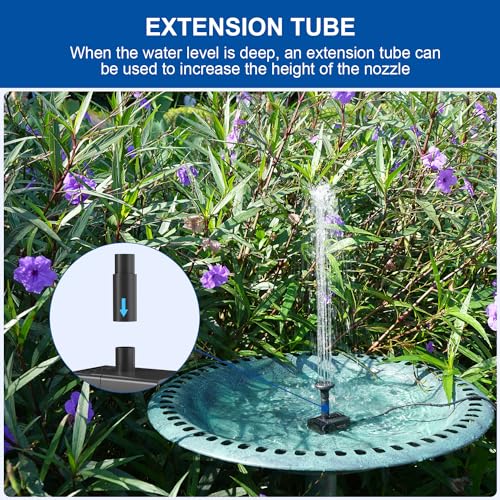 | Features | 【3.5W Energiesparend Solar Springbrunnen】SZMP 3.5W High-Tech monokristallines Silizium-Solarpanel wird nicht brechen, verformen oder delaminieren und hat eine Lebensdauer von bis zu 20.000 Stunden; Vollständig durch Solarenergie betrieben, keine Batterien und Strom erforderlich; Diese Solar-Wasserpumpe ist sehr umweltfreundlich und energieeffizient; Es ist sehr sicher von Benutzern ohne jede Gefahr, keine Notwendigkeit, über versehentliche Verletzungen aufgrund von Problemen wie Leckagen zu kümmern, 【Drehbares Solarpanell】Kombiniert mit zwei Arten von drehbarem Design, um dieses Solarpanel zu installieren, horizontal und longitudinal, mit 340° Drehung in der horizontalen Richtung und 270° in der Längsrichtung, fängt effektiv die Sonnenstrahlen für Superbetrieb und effizientes Arbeiten ein; Die abnehmbare Halterung Design der Solar-Teich Brunnen kommt mit 9.84FT Kabellänge so dass es in mehreren Orten nach Belieben, wie Rasen, Wände und Ecken installiert werden, 【100% Glaspaneel-Design】Unser Solarbrunnen nimmt 100% Glas-Solarzellenpanel an, das eine stärkere Lichtdurchlässigkeit, Wetterbeständigkeit und besseres Aussehen hat. Es hilft, die Fähigkeit der Solarzelle zu erhöhen, Sonnenlicht zu empfangen und eine höhere photoelektrische Umwandlungseffizienz zu erhalten; Es oxidiert nicht und wird auch bei rauen Wetterbedingungen nicht weiß. Auch die Textur ist sehr fortschrittlich, 【8 Austauschbare Düsen】Solar-Teichbrunnen mit 8 Düsen und 1 Verlängerungsrohr, die ausgewählt werden können, um eine Vielzahl von Wassermustern zu erstellen und den Garten zu genießen; Die verschiedenen Düsen haben ihre eigene Strahlhöhe und Strahlform; Die Höhe und Form kann durch Auswechseln der Düsen angepasst werden, um ein Überlaufen des Beckens zu vermeiden, 【Praktische Tipps】Der Filterschwamm im Inneren der Wasserpumpe hat die Funktion der sicheren Filterung und der Blockierung des Abflusses, was Verunreinigungen und Blätter besser verhindern und die Lebensdauer der Wasserpumpe verlängern kann; Bitte beachten Sie, dass die Pumpe regelmäßig gereinigt werden muss, um ein Verstopfen mit Staub zu vermeiden |