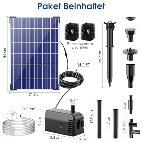 Darüber hinaus enthält die Pumpe mehrere Düsen, mit denen du verschiedene Wasserstrahl-Designs kreieren kannst. Dies ermöglicht dir, das Wasserspiel individuell anzupassen und so kreative Akzente in deinem Garten zu setzen.