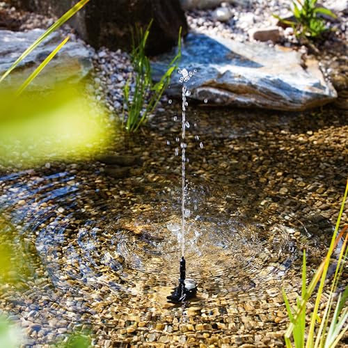 Das Design der Pumpe ist funktional und ansprechend. Die schwarze Farbe fügt sich gut in die meisten Gartenlandschaften ein und die kompakte Bauweise ermöglicht eine einfache Integration in Teiche und Brunnenanwendungen. Der Schutzgrad IP68 bietet Sicherheit vor Wasser und Staub, was die Langlebigkeit des Produkts erhöht.