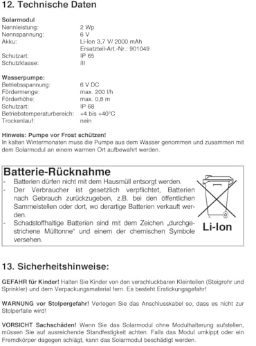 - Trockenlaufschutz und effizientes Solarmodul von 2 Watt