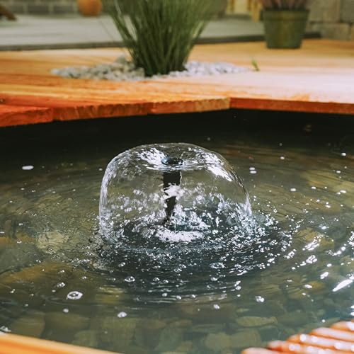 Das Design des Solar Pumpensystems passt sich harmonisch in jede Gartenlandschaft ein. Besonders die Springbrunnenfunktion mit zwei verschiedenen Aufsätzen verleiht deinem Teich ein ansprechendes Aussehen. Die integrierte LED-UV-Lampe sorgt nicht nur für klare Wasserverhältnisse, sondern trägt auch zur Beleuchtung des Teiches bei.