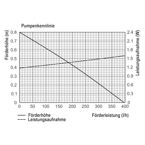 - Maximale Förderleistung: 380l/h und Förderhöhe von bis zu 0,7m