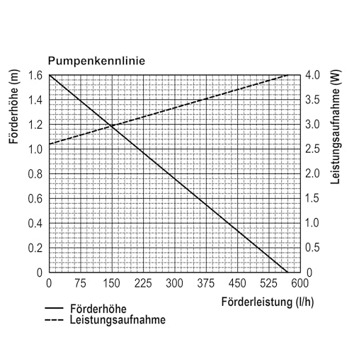 - Leistungsstark: Förderhöhe bis 1,4 m und 550 l/h