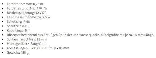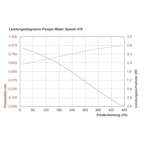 - Maximale Förderleistung von 470 l/h und Förderhöhe von bis zu 0,75 m