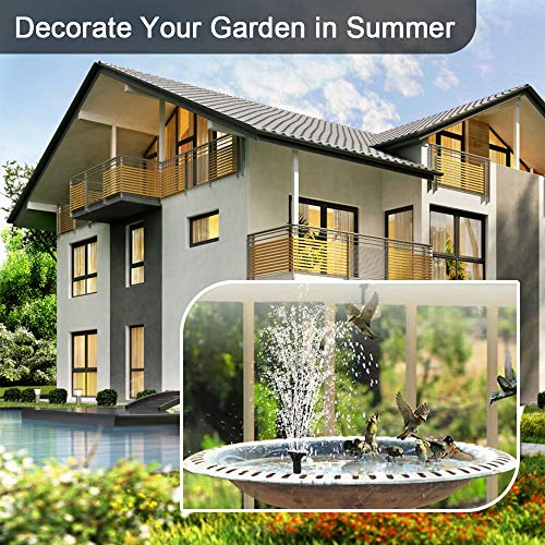 | Features | Solar Brunnen Pumpe: Es wird komplett mit Solarenergie gesteuert, benötigt weder Batterie noch Strom. Keine Batterie darin, eine wirklich umweltfreundliche Solarpumpe.Platzieren Sie einfach die Solar-Fontänenpumpe in das Wasser und die Pumpe arbeitet automatisch in 3 Sekunden, sobald sie ausreichendem Sonnenlicht ausgesetzt ist., 4 Sprays für 4 Fontänenstile:Mit 4 verschiedenen Düsengrößen ausgestattet, können Sie mit diesem Solar Springbrunnen 4 verschiedene Brunnenmuster genießen., Einfache Installation und Bedienung: Legen Sie die Pumpe lediglich ins Wasser, den Rest erledigt die Sonne. Je heller es das Sonnenlicht empfängt, desto besser funktioniert es., Lange Lebensdaue: Dieser Solar Springbrunnen besteht aus einem hocheffizienten Solarpanel und einer neuen Art von bürstenloser Pumpe. Hierdurch eine lange Lebensdauer, einen niedrigen Verbrauch . Lebensdauer: mehr als 10,000 Stunden., Mehrere Anwendungen:Diese umweltfreundliche Solarpumpe ist ideal für Vogelbad, Fischbecken, kleinen Teich, Pool, Garten, Wasserzirkulation für Sauerstoff.Ihr Garten würde auf jeden Fall die Aufmerksamkeit der Passanten auf sich ziehen. Lassen Sie Ihren Garten von der Solarwasserpumpe so amüsant dekoriert aussehen. |