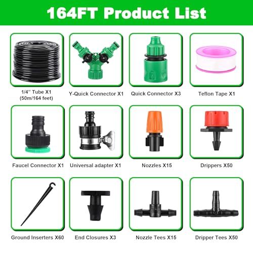 - Umfangreiches Mikro-Tropfbewässerungsset mit 200 Stück Zubehör und 4,6 m Schlauch