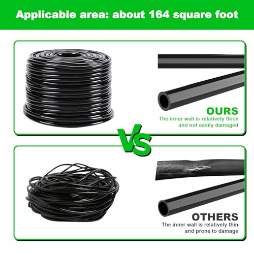| Features | Sehr praktisch: Dieses Mikro-Tropfbewässerungsset kommt mit 4,6 m 200 Stück Tropfbewässerungsset 6,35 mm Blanko-Auslassrohr, Sie können alle Pflanzen auf einmal gießen, Sie müssen nur den Wasserhahn einschalten, wenn Sie es brauchen, Rasenbewässerung, Terrasse, Dachkühlung, Landwirtschaft, Gemüse, Gewächshaus, Blumenbeet, Schwimmbad Nebelkühlung usw., Voll ausgestattet: Unser Mikro-Tropfbewässerungsset kommt mit 3 Arten von Sprinklerköpfen, jeder Kopf kann auf verschiedene Bewässerungsmodi wie Mikrotropfen, Sprinkler, Bewässerung usw. eingestellt werden. Es kann den Wasserbedarf verschiedener Pflanzen gleichzeitig decken., Wassersparend: Bewässerung der Wurzeln von Pflanzen mit dem Garten-Tropfbewässerungsset minimiert den Wasserverlust. Pflanzen langsam und präzise dort gießen, wo ihre Wurzeln sie brauchen., Einfach zu installieren: Einfach zu montieren und zu verwenden, keine Grab- oder Sanitärkenntnisse erforderlich, einfach die Armaturen und den Tropfer einstecken und sofort mit dem Bewässern der Pflanzen beginnen., Neues Upgrade: Das neue Gartenbewässerungssystem Design 4×6-Wege-Anschluss kann das Wasser in 16 Nebenflüsse teilen, effektiv den Wasserdruck erhöhen und das Problem des Wassermangels am Ende des Bewässerungssystems perfekt lösen. Erfüllen Sie alle Ihre Bedürfnisse. |