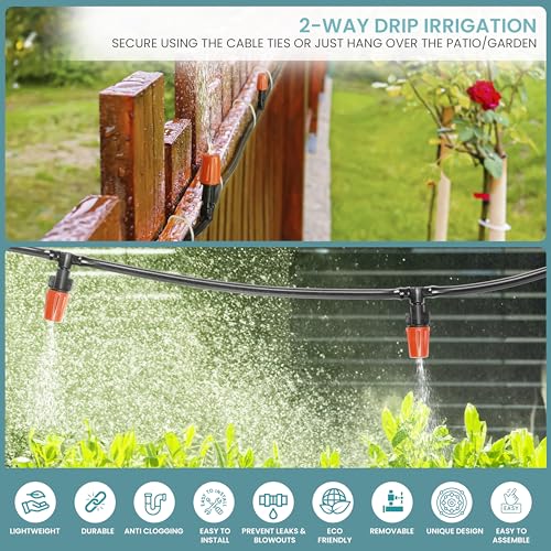 | Features | Tropfbewässerungssystem: Dieses Mikro-Tropfbewässerungsset macht die Bewässerung Ihres Gartens bequem und einfach. Unser Set enthält einen 10 m langen Verteilerschlauch, 10 Düsen/Sprinkler, 9 Drei-Wege-T-Anschlüsse, 1 Wasserhahn-Adapter und 10 Kabelbinder., LANGLEBIGE MATERIALIEN: Hergestellt aus hochwertigem PVC-Kunststoff, ist dieses Rohr umweltfreundlich, langlebig und witterungsbeständig und funktioniert das ganze Jahr., EINSTELLBARE SPRAY-DÜSEN: Jede einzelne Sprühdüse kann eingestellt werden, um unterschiedlichen Bewässerungsbedürfnissen gerecht zu werden. Drehen Sie die Kappen, um den Durchfluss einzustellen/abzuschalten und so den Wasserverbrauch zu minimieren. Das Kit ist einfach zu installieren und zu verwenden, ohne dass ein Graben oder eine Rohrleitung erforderlich ist, AUTOMATISCHE PFLANZENBEWÄSSERUNG: Dieses Set ist perfekt für die Gartenbewässerung, die Beregnung Ihres Rasens/Gewächshauses, den Anbau von eigenem Gemüse, Obst oder Bäumen, die Bewässerung von Blumenbeeten, Höfen oder Terrassen uvm., LEISTUNGSDETAILS: Der Schlauch kann einem Wasserdruck von 59,8PSI standhalten und bietet eine max. Leistung von 20-26L (4,4-5,7gal) pro Stunde. Das Kit ist einfach zu installieren, ohne dass ein Graben oder eine Rohrleitung erforderlich ist. |