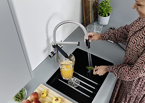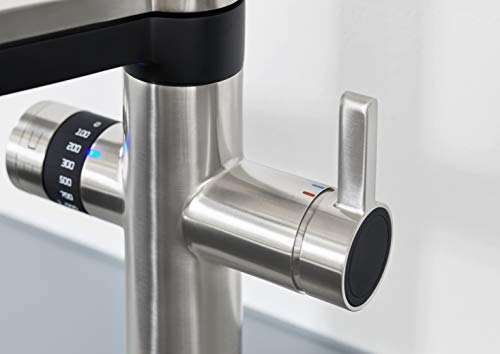 | Features | BLANCO drink.soda: 5-in-1 Soda Wasserhahn – Gefiltertes Wasser, gekühlt, Wasser in Still/medium oder Sprudelnd, warm/kalt, 6 vordefinierte Mengeneinstellungen (100ml-1.000ml), Wasserhahn mit Sprudelwasser (still, medium, klassisch sprudelnd): Kohlensäuregehalt des gefilterten Trinkwassers wählbar über separates Drehrad, Click & Touch Bedienung: Einstellung der gefilterten Wassermenge dank präzisem Drehrad und intuitive Touch-Bedienung für bedarfsgerechten Wasserverbrauch, Separater Auslauf für veredeltes Trinkwasser, Zweistrahlbrause mit praktischer Magnethalterung, Integriertes Reinigungsprogramm für mehr Hygiene und Sicherheit, Perfektes Design in der Küche, Lieferumfang: SODA Armatur, SODA Kühl- & Karbonisierungseinheit, CO2-Zylinder, Drink Filter, Sprudel direkt aus dem Wasserhahn |