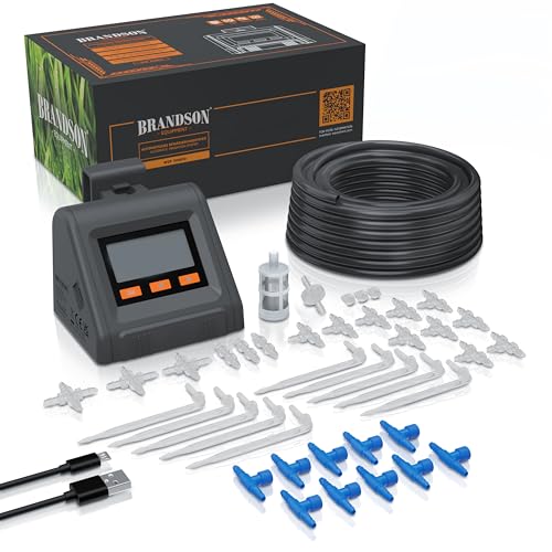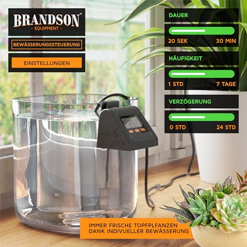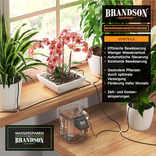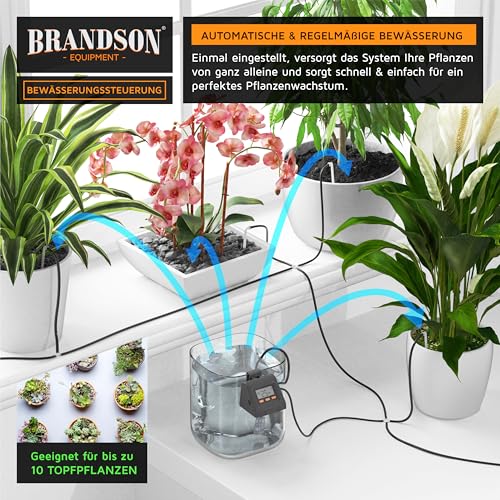 Brandson – automatisches Bewässerungssystem – Tröpfchenbewässerung mit Computer – Tropfbewässerungssystem – Set mit 45 Teilen – bis zu 10 Topfpflanzen – Bewässerungsanlage Garten Balkon Terrasse