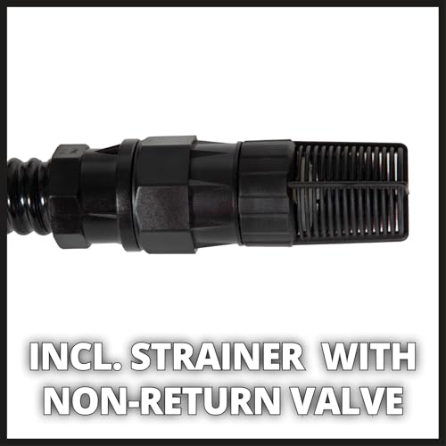 | Features | Pumpen-Zubehör – Der Original Einhell Saugschlauch 4 m Kunststoff ist ein passendes Zubehör oder Ersatzteil für Einhell Oberflächenpumpen mit passendem Sauganschluss., Passend für – Der Einhell Saugschlauch ist speziell passend für die Einhell Gartenpumpen, Hauswasserwerke und Hauswasserautomaten mit einem 42 mm (R1 1/4") Sauganschluss., Saugschlauch – Der aus hochwertigem und strapazierfähigem Kunststoff gefertigte Saugschlauch ist 4 m lang, hat einen Durchmesser von 25 mm und einen 42 mm (R1 1/4 IG) Anschluss., Adapter & Doppelnippel – Mit dem Schlauch werden ein Adapter mit einem Innengewinde von 33,3 mm (1 Zoll) und ein Doppelnippel mit einem Außengewinde von 33,3 (1 Zoll) mm geliefert., Lieferumfang – Im Lieferumfang enthalten sind der Saugschlauch, ein Kunststoff-Saugkorb mit Rückschlagventil, ein Adapterstück und ein Doppelnippel. |