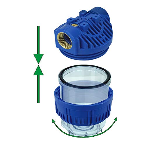 | Features | 5 Zoll Schmutzfilter mit 1x Siebfiltereinsatz, Anschluss: 3/4 Zoll Messing-Innengewinde (ca.24,66mm)., Robustes, transparentes Filtergehäuse 1L., Wandbefestigung, Montageschlüssel, Entlüftungsschraube., Zum Schutz von Pumpen, Armaturen, Boiler, Wassertanks, Waschmaschinen |