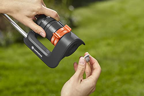 Gardena Viereckregner Aqua S: Rasensprenger zur Bewässerung von Flächen von 90-220 m², Reichweite 7-17 m, Sprengweite max. 13 m, integrierter Metallfilter (18700-20)