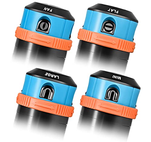 - 4 verschiedene Strahlarten: FLACH, FAN, LARGE, und MINI für individuelle Einsätze.