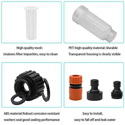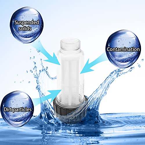 | Features | 💦💦[Hochwertige Materialien]:Wasserfilter Gartenschlauch Hergestellt aus ABS und PET,Hat es eine Gute Haltbarkeit und die für Eine Lange Lebensdauer Erforderliche Festigkeit.Hervorragende Funktionen,mit Denen Sie Ihre Arbeit Einfacher und Schneller Erledigen Können, 💦💦[Ausreichendes Zubehör]:Die Wasserfilter-Gartenpumpe besteht aus einem Kit,1 * Wasserfilter Gartenschlauch mit Stecker +3 * Filtereinsatz+ 2 * Schlauchverbinder 1/2", 💦💦[Leicht zu reinigen]:Da Wasserfilter Gartenschlauch ein Transparentes Gehäuse Hat,ist Leicht zu Erkennen,Wann der Filter Gereinigt Werden Sollte.Wenn der Wasserfilterschlauch Verschmutzt ist,Schrauben Sie ihn Einfach ab und Spülen Sie ihn Unter Fließendem Wasser, 💦💦[Starke Kompatibilität]:Die Meisten Hochdruckreiniger Eingänge,Wasserkegel und Standard-Gartenschläuche Können Einfach Angeschlossen Werden.Auf Beiden Seiten des Filters Befinden sich 3/4-Zoll-Verschraubungen.Wasserfilter Gartenschlauch Set Hat Eine Schnappverbindung,Wodurch die Beiden Gelenke Unter Leichtem Druck Fest Verbunden Werden Können, 💦💦[Weit Verbreitet]:Der Maximale Druck beträgt 12 bar,die Maximale Betriebstemperatur Beträgt 60°C/140°F,Geeignet für Hochdruckreiniger,Wohnmobile,Gartenpumpen,Gartenbewässerung, Waschmaschinen,Regenwassertanks Usw |