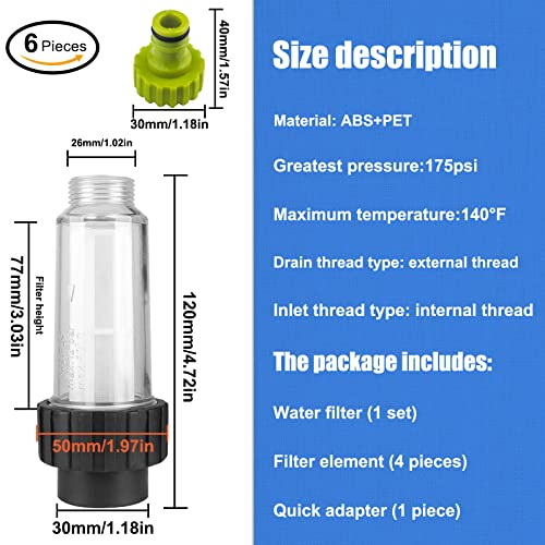 GZkushi Wasserfilter Set, 3/4 Zoll Wasser Vorfilter mit 4 × Filtereinsatz & Schnelladapter, für Hochdruckreiniger, Gartenpumpe, Gartenbewässerung, Wohnmobil