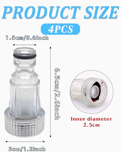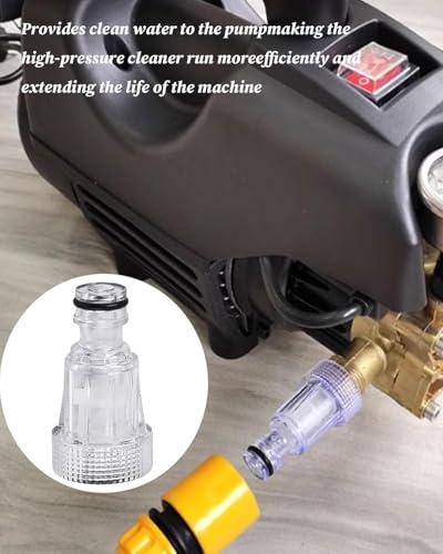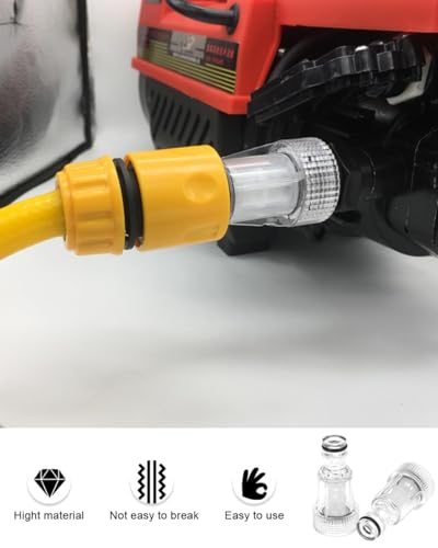 | Features | Strapazierfähiges Material: Der Schnelladapter des Hochdruckreinigers besteht aus hochwertigem Kunststoff, der sich nicht leicht verformen lässt, bei hohen Temperaturen nicht korrodiert und bei längerem Gebrauch keine Risse bekommt, sodass Sie ihn bedenkenlos verwenden können, Hochdruckschutz: Die Vorfilter-Gartenpumpe verhindert, dass Partikel in die Pumpe gelangen, und filtert Schmutz heraus, wodurch die Hochdruckreinigungspumpe vor Schmutzpartikeln im Schmutzwasser geschützt wird und somit die Lebensdauer der Maschine verlängert wird, Einfache Reinigung: Der Springbrunnenfilter hat ein transparentes Filtergehäuse, das jederzeit visuell überprüft werden kann. Bei starker Verschmutzung kann der Filter einfach und ohne Werkzeug entfernt und gereinigt werden, Schnell zu installieren: Das Anschlussgewinde ist einfach zu installieren und die Schnellkupplung kann leicht an die meisten Hochdruckreiniger-Einlässe, Wasserhähne und Standard-Gartenschläuche angeschlossen werden, Vielfältige Einsatzmöglichkeiten: Kann für Hochdruckreiniger, Gartenpumpen, Gartenbewässerung usw. verwendet werden. Ob Hochdruckreiniger oder Gartenpumpe, es kann die Pumpe schützen |