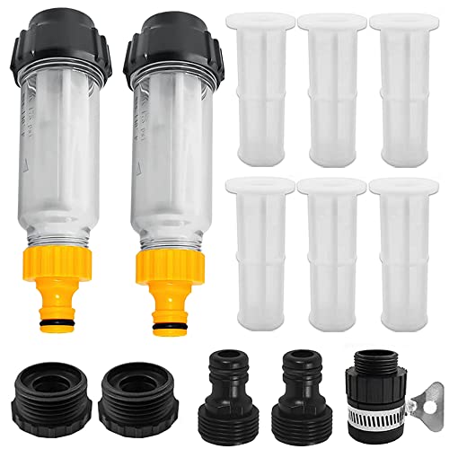 | Features | Ausreichend Zubehör: Das vorfilter gartenpumpe Kit enthält ein komplettes Filterset. Sie erhalten 2 Zwischenfilter + 6 Zwischenfilter + 5 schwarze Anschlüsse. Das 3/4-Zoll-Anschlussgewinde kann angepasst werden, um auf vielfältige Weise verwendet zu werden. Es gibt genug Teile zum Austauschen., Hochwertige Materialien: Der vorfilter gartenpumpe besteht aus ABS und PET. Wasserfilter-Gartenschlauch es hat die erforderliche festigkeit für eine gute haltbarkeit und lange lebensdauer. Ausgezeichnete funktionen, können ihnen helfen, jede arbeit einfacher und schneller zu erledigen., Leicht zu Reinigen: Die große Filterfläche garantiert eine optimale Durchflussrate. Durch das transparente Filtergehäuse ist jederzeit eine Sichtkontrolle möglich und wenn der Filter verschmutzt ist, bei starker Verschmutzung kann der Wasserfilter direkt mit Wasser gespült werden, einfache Demontage zur Reinigung ohne Werkzeug. Verlängert die Lebensdauer Ihres Hochdruckreinigers., Starker Hochdruckschutz: Garten schlauch filter verhindert, dass schmutz, partikel oder fremdkkrper in die pumpe gelangen. Er schützt die Pumpe des Hochdruckreinigers und verlängert ihre Lebensdauer. Der maximale Arbeitsdruck beträgt bis zu 175 PSI. Die maximale Arbeitstemperatur beträgt 140 ℉., Breites Anwendung: 3/4 Zoll Anschlussgewinde macht es vielseitig, Ob am hochdruckreiniger oder der gartenpumpe zum schutz der pumpe. Oder im gartenschlauch zur vermeidung verstopfter düsen von bewässerungswerkzeug. Bietet optimalen Schutz für Pumpen und Düsen beim Umgang mit flüssigen Zuschlagstoffen aus Regentonnen, Zisternen, Brunnen, Reservoirs oder alten Wasserleitungen. |
