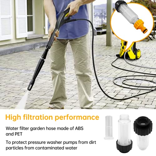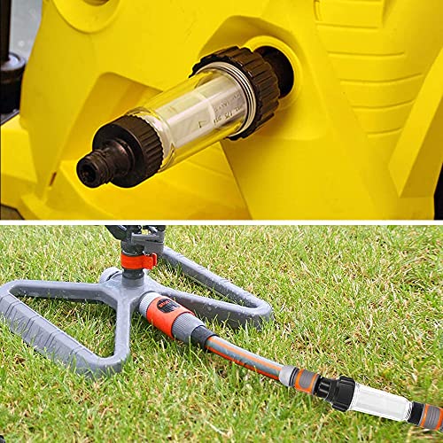 MOERAE Wasserfilter Gartenschlauch Set, 2 Stück 3/4 Zoll Wasser Vorfilter Wasserfilter mit 6 Filtereinsatz und 5 Schnelladapter, für Hochdruckreiniger Gartenbewässerung Gartenpumpe Wohnmobil Haushalt