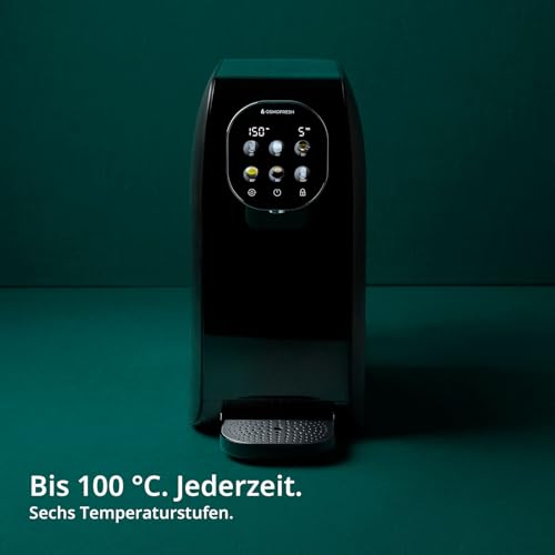 Die Bedienung der Osmoseanlage ist äußerst intuitiv. Das Touch-Display ermöglicht eine einfache Auswahl der gewünschten Temperatur und andere Einstellungen. Auch der Filterwechsel wird durch ein cleveres System erleichtert, wodurch du Zeit und Mühe sparst.