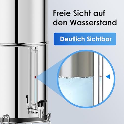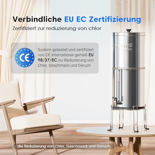 | Features | ✔Innovative 6 Stufige Filtration – Purewell Schwerkraft-Wasserfiltersysteme verwenden eine Kombination von Filtrationstechnologien. Verwendet eine Aktivkohleblock zur Reduzierung von Rost, Sediment, Organischen Stoffen und Schwermetallen. Der Fluorid-Filter verwendet eine Fluorid-Reduktionsmembran, einen aktivierten Kohlenstoffblock und drei Sediment-PP-Membranen, um Fluorid und Chlor usw, abzufangen., ✔Umfassendes Zubehörpaket – Dieses Filtersystem sorgt für Sicherheit und sieht dabei auch noch gut aus. Das Gehäuse besteht aus lebensmittelechtem 304-Edelstahl, der eine langlebige und robuste Konstruktion gewährleistet.Glas Wasserstandsanzeiger Die rote, schwimmende Kugel im Schauglaszapfen hilft, den Wasserstand deutlich zu erkennen, so dass Sie auf einen Blick sehen können, wie viel Wasser sich noch in der unteren Kammer befindet. Eine rutschfeste Halterung wurde ebenfalls hinzugefügt., ✔Energieeffizient – Durch das Prinzip der Schwerkraftfiltration wird kein Strom benötigt. Das auf Schwerkraft basierende Wasserreinigungssystem ist in einen oberen und einen unteren Behälter unterteilt. Der obere Behälter kann mit ungefiltertem Leitungswasser gefüllt werden, während der untere Behälter mit gefiltertem Trinkwasser gefüllt wird. Da das System keinen Strom benötigt, kann es sowohl im Innen- als auch im Außenbereich verwendet werden., ✔Lange Lebensdauer und Austauschbar – Die beiden Fluorid-Filter (weiß) und die beiden schwarzen filtern können effektiv bis zu 3,785 Litres Wasser bzw. 22,710 Litres Wasser filtern (Je nach Wasserqualität variiert die Lebensdauer der Filterelemente etwas). Aber für eine optimale Leistung sollten alle 6 Monate ausgetauscht werden. HINWEIS: Das Filterelement senkt NICHT den TDS-Wert., ✔Täglicher Gebrauch & Wildes Überleben – Das Purewell Schwerkraft-Wasserfiltersystem funktioniert ohne Strom und ist von der Schwerkraft abhängig. Es eignet sich ideal als Filtersystem für zu Hause, auf Reisen, für Outdoor-Aktivitäten und Notfälle. Der Filter kann Ihnen gesundes, sauberes und qualitativ hochwertiges Wasser zu Hause und im Freien bereitstellen. |