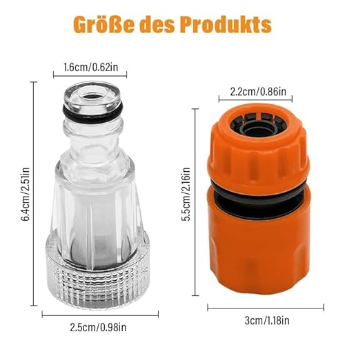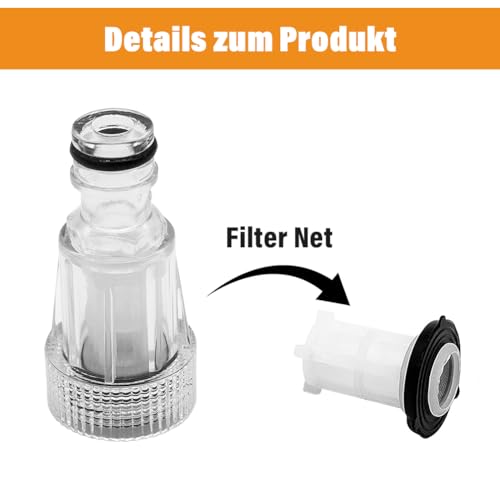 | Features | [Produkt Material]Der Gartenwasserfilter ist hauptsächlich aus ABS, hohe Härte, nicht leicht zu verformen und Korrosion in hohen Temperaturen Umwelt gemacht., [Starker Schutz]Der 3/4-Zoll-Wasservorfilter-Satz verhindert, dass Schmutz oder Ablagerungen in die Pumpe gelangen und verlängert die Lebensdauer des Hochdruckreinigers., [Leicht zu reinigen]Der Wasserfilter hat ein durchsichtiges Gehäuse, das jederzeit überprüft werden kann, um festzustellen, ob er gereinigt werden muss. Wenn der Wasserfilter stark verschmutzt ist, kann er direkt mit Wasser gereinigt werden., [ Einfache Installation]Die Anschlussgewinde der Schlauchkupplung sind einfach zu installieren, und die Schnellkupplungsanschlüsse können leicht an einem Anschluss oder Schlauch angebracht werden., [Weit verbreitet]Die Wasserfilter kann für Hochdruckreiniger, Gartenpumpen, Gartenbewässerung und Wohnmobil. |