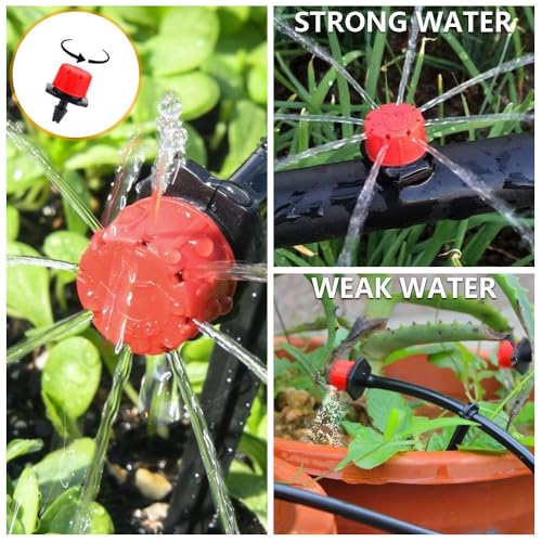 Eines der herausragenden Merkmale dieses Systems sind die verstellbaren Düsen. Du kannst die Wassermenge individuell an jede Pflanze anpassen, was besonders vorteilhaft ist, wenn du unterschiedliche Pflanzen mit variierenden Wasserbedürfnissen hast. Die roten Tropfer bieten sogar drei verschiedene Sprühmodi für maximale Flexibilität.