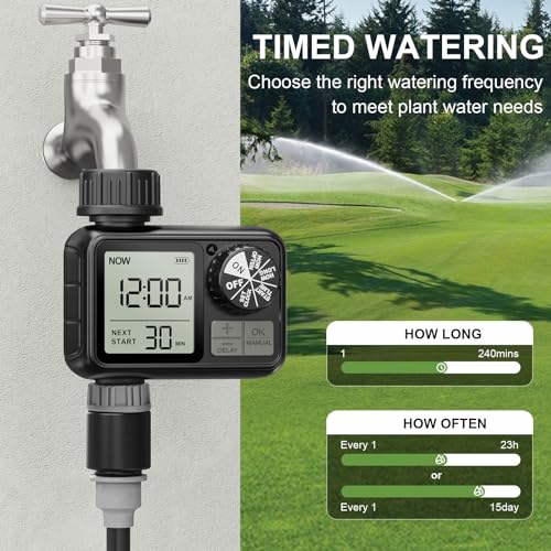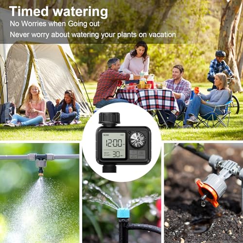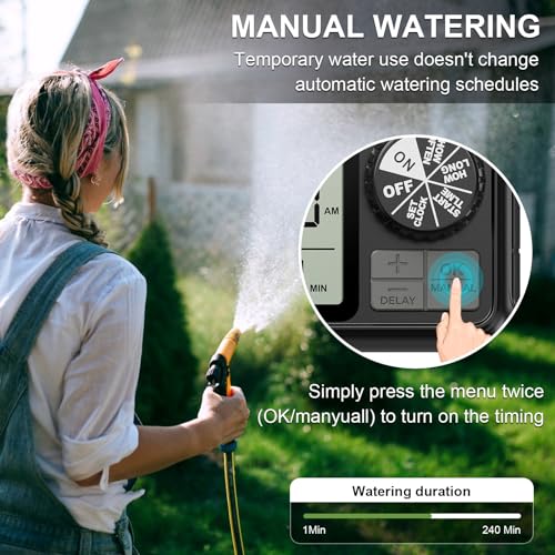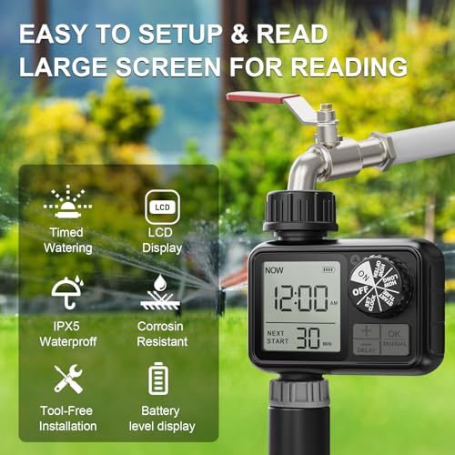 Xtsuen Bewässerungscomputer, Bewässerungsuhr mit Regenverzögerung/Automatischem & Manueller Modus, IPX5 Wasserdicht/Großbild LCD-Display Wasser Zeitschaltuhr für Garten Rasen